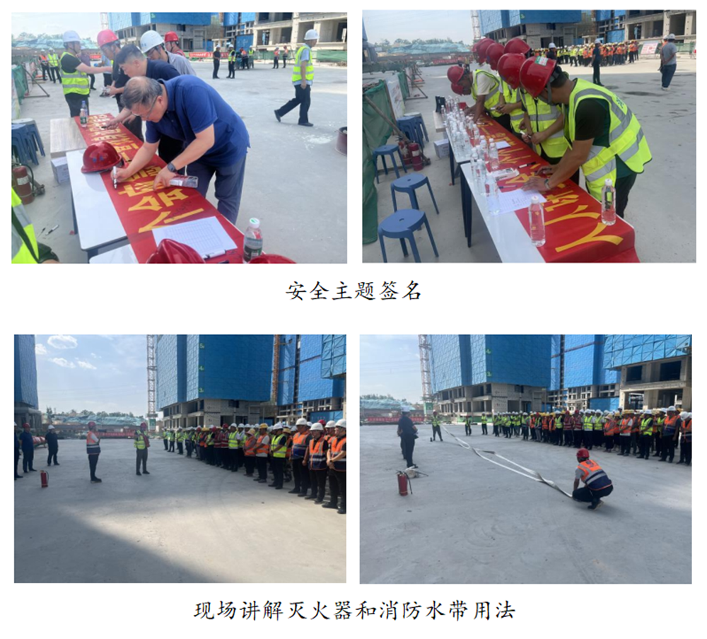 活動(dòng)期間,大家積極參與安全主題簽名和主題宣誓,講解員現(xiàn)場(chǎng)講解消防水帶和滅火器的用法,解答安全生產(chǎn)相關(guān)知識(shí),并開(kāi)展了消防實(shí)戰(zhàn)演練。集團(tuán)公司分管安全生產(chǎn)的總經(jīng)理助理黃志澎作重要講話(huà),強(qiáng)調(diào)了安全生產(chǎn)的重要性,要求各單位扎實(shí)做好今年防汛工作,并為一線(xiàn)工人發(fā)放防暑降溫藥品和安全知識(shí)手冊(cè)200套。